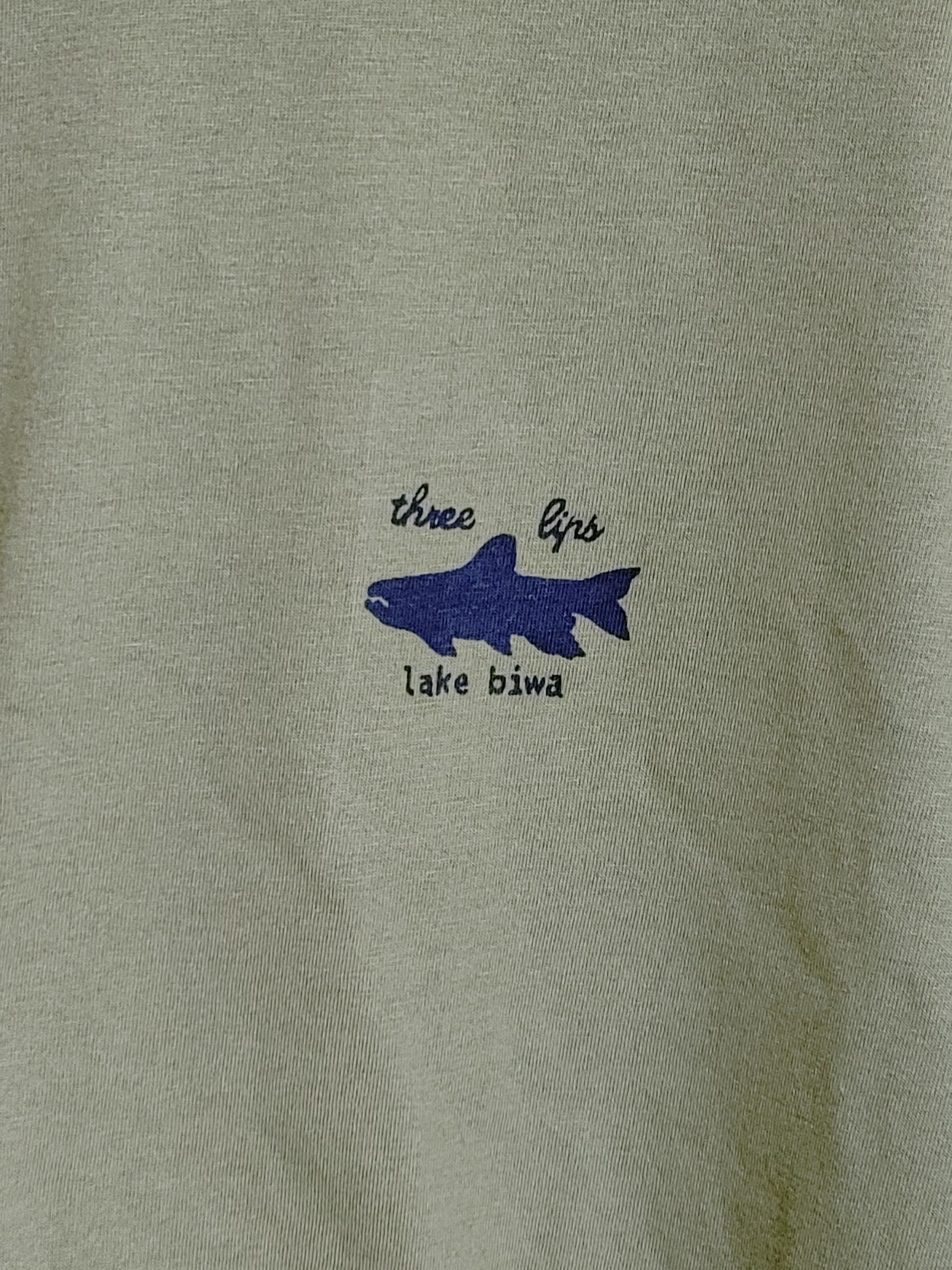 右肩に、新しい屋号の『hearth』胸にケタバスのシルエットと英名の『three lips』がプリントされています。